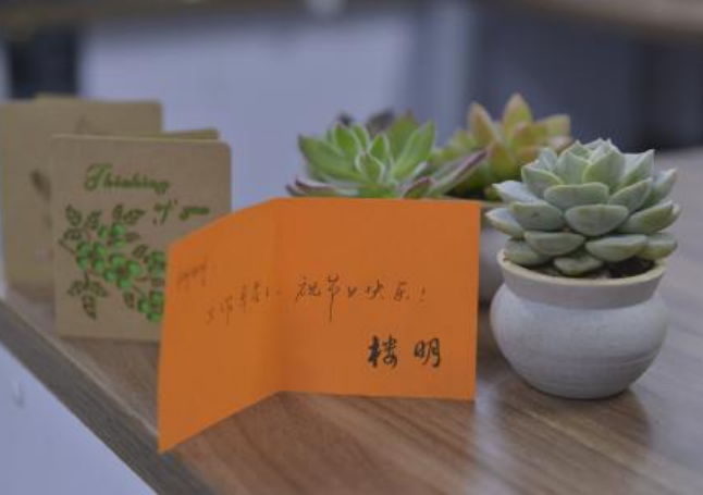 3月8日上午,控股總部的女同事們都收到了一份特別的“女神節(jié)”禮物——一張控股董事局主席樓明親筆簽名的賀卡和一盆精美的多肉盆栽。