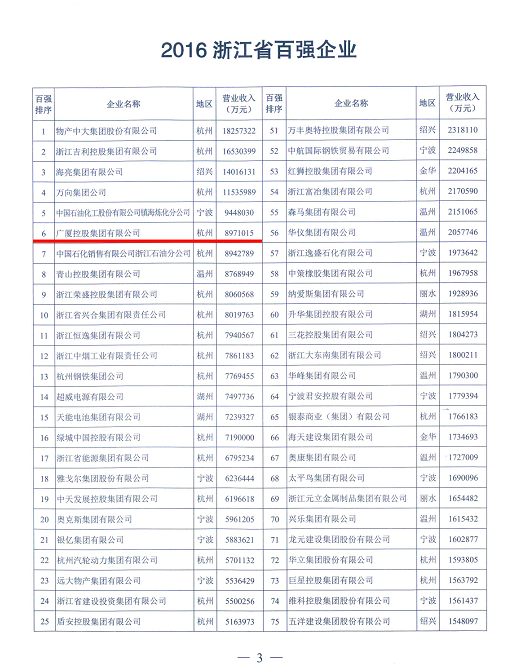 10月26日,浙江省企業(yè)聯(lián)合會、浙江省企業(yè)家協(xié)會、浙江省工業(yè)經(jīng)濟聯(lián)合會聯(lián)合發(fā)布了浙江省綜合百強企業(yè)榜單,以及浙江省制造業(yè)百強、服務(wù)業(yè)百強和成長性最快百強企業(yè)名單。廣廈控股集團以897億的營業(yè)收入,位列綜合百強榜單第6位。